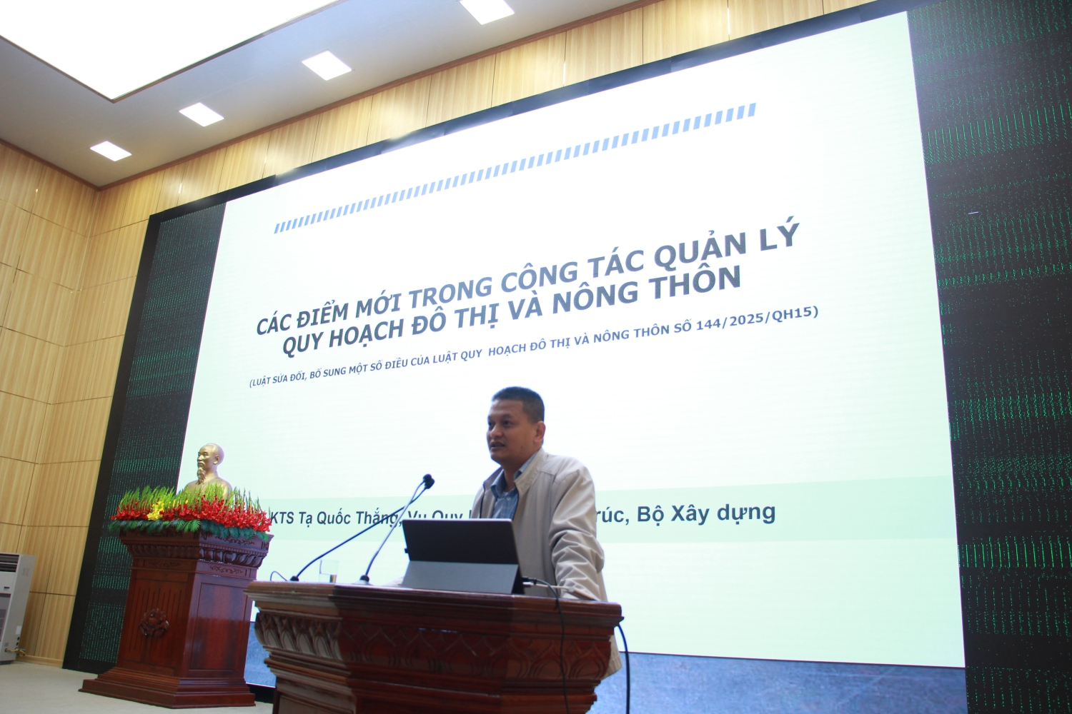 Tại Hội nghị, các đồng chí báo cáo viên đã phổ biến các quy định mới của Luật Quy hoạch đô thị và nông thôn năm 2024, Luật số 144/2025/QH15 và Nghị định số 178/2025/NĐ-CP. Nội dung tập huấn tập trung vào việc nâng cao năng lực cho cán bộ chuyên môn, đặc biệt là UBND cấp xã, trong bối cảnh địa phương đang thực hiện mô hình chính quyền 02 cấp và đồng loạt triển khai lập quy hoạch chung cấp xã. Cũng tại Hội nghị, các báo cáo viên đã trực tiếp giải đáp các thắc mắc, khó khăn trong quá trình triển khai, thực hiện cho đại biểu tham dự.